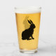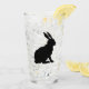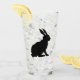 This glass tumbler for beverages has a black silhouette of a sitting bunny rabbit from a side profile on the front and back.