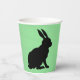 These paper cups have the side profile of a black silhouette sitting bunny rabbit with tall ears on a green background.