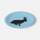 Black Silhouette Sitting Rabbit on light Blue Paper Plate