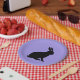This paper plate is purple with a bunny rabbit done in black silhouette in a sitting position. Minimalist style great for Easter or spring celebrations.