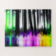 Black Silhouette Trees with Multicolor Splashes Jigsaw Puzzle