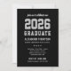 Celebrate your senior with this modern graduation party invitation featuring bold black, silver, and white varsity-style “2026 GRADUATE” typography and a clean photo layout. Customise the name, school, and party details for an easy-to-read design that feels classic and elevated. The coordinating back features a full photo layout with “class of” script for a polished, two-sided look.
