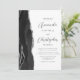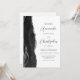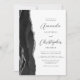The left-hand edge of this elegant modern wedding invitation features a black watercolor agate border trimmed with faux silver glitter. The customisable text combines charcoal grey script and sans serif fonts on a white background. The reverse side provides space for wedding details, along with a QR code guests can scan to visit your website and RSVP, which saves the cost of printing and mailing separate RSVP cards.