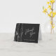 The left-hand edge of this elegant flat wedding thank-you card features a black watercolor agate design trimmed with silver faux glitter. The text is in silver grey script and sans serif fonts on a dark slate black background.