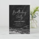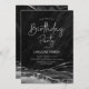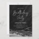 Black and silver agate birthday party invitation. Elegant modern design featuring watercolor agate marble geode background, faux glitter silver and typography script font. Trendy invite card perfect for a stylish women's bday celebration. Printed Zazzle invitations or instant download digital printable template.