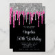 Black Silver Deep Pink Glitter Drips 50th Birthday