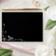 This dramatic black envelope features a pretty faux diamond heart and leaf swirl design on the front left bottom corner. It matches the Black Silver Faux Diamond Heart Swirl Wedding Invitations in our store. There is also a matching envelope for the square invitations by the same name. *Clip art used in this design is copyrighted by Encore Software, Inc., which permits use to its licensors. All rights reserved. Please note - the image is printed, and does not contain glitter.