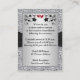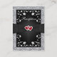 This black and silver grey floral reception enclosure card has a PRINTED black ribbon with a pair of diamond jewels and red FAUX glitter joined hearts on it. It also has a silver FAUX foil outer border with silver grey flowers and vines on it that matches the wedding invitation shown below. If you re-size the card, or if you change fonts, or the size of the font, some of the text may get cut-off. Everything will print as you see it on your monitor. I will not see your card, and Zazzle will NOT correct anything (typos, mis-alignment etc.). The text is customisable. If you need help with this card, please email me BEFORE you place your order. If you require any other matching items, please email your request to niteowlstudio@gmail.com.