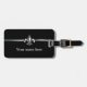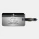 These Black Silver Fleur de Lis luggage tags will help you keep track of your luggage in style. The luggage tags feature a black background divided by a silver stripe decorated with an imitation brushed metal Fleur de lis symbol. The back features the same symbol on an imittion brushed metal background. Personalise with your name on front and contact information on the back.