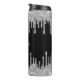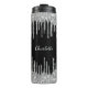 A stylish black background with elegant faux silver glitter drips, paint dripping look. Personalise and add your name. The name is written with a white hand lettered style script.