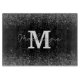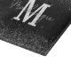 Personalised black monogram cutting board featuring a trendy silver glitter waterfall effect, your initial, and name in a elegant script font.
