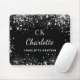 A classic, stylish black background. Decorated with faux silver glitter dust. Personalise and add your first name, monogram initials and full name.