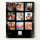 Make your own unique family photo collage as a gift or for yourself. Use four, 9 of your favourite photos of your family, friends, dream travel destination or pet! Personalise and add a name and your monogram letter. The name is written with a modern hand lettered style script with swashes. A classic black background, decorated with faux silver glitter dust. To keep the swashes only delete the sample name, leave the spaces or emoji's in front and after the name.