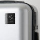 The left edge of this elegant Save the Date magnet features a silver faux glitter border. The customisable text combines silver grey handwriting script with serif font on a black background.