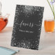 A black background color. Decorated with faux silver glitter dust. With the text: Favors, please take one!