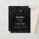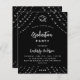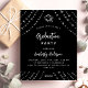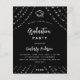 A black background decorated with faux silver stars and a cap. Personalise and add a name and party details. The text Graduation and the name are written with modern hand lettered style script.