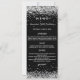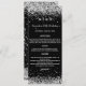 An elegant, glamourous menu card. Personalise and add your name, date and the menu. Black background, decorated with faux silver confetti.