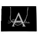 Black Silver Modern Script Girly Monogram Name Large Gift Bag