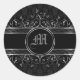 Black & Silver Ornate Gothic Monogrammed Classic Round Sticker