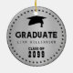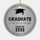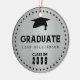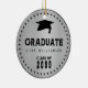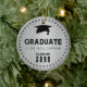 Designed with a guy in mind, this silver graduation Christmas ornament features bold and masculine typography. It' is very easy to add your graduate's name and class year in this template. A graduation cap is at the top of the design. A double row of black dots frames the sticker and gives it a polished look.