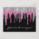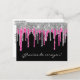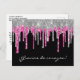 Black Silver Pink Glitter Drip Quinceañera Gracias Postcard