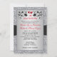 This romantic black and silver grey floral wedding invitation has a PRINTED black ribbon with a pair of diamond jewels and red FAUX glitter joined hearts on it. It also has a silver FAUX foil outer border with silver grey flowers and vines on it, with a verse on the front that says "This day I marry my best friend, the one I laugh with, dream with, live for, love" and another quote on the back in pretty red cursive that says "Till Death Us Do Part". You can remove the red text image by using the "clear" feature below that image in the personalise section. You can add a monogram in place of the red text if you prefer that. This would be a perfect wedding invitation for a winter wedding, a Valentine's Day wedding, a gothic wedding, or a New Year's Eve wedding. If you need customising this invitation, or if you need matching items to go with it, email your request to niteowlstudio@gmail.com.