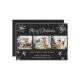 Cute black photo collage Merry Christmas and Happy New Year card featuring snowflakes and stars on the front and falling snow at the back. Easily personalise this elegant holiday card with your photos and text.
