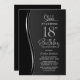 Invite your friends and loved ones with this modern black and silver surprise 18th birthday party invitation. The customisable text area in this invitation template allows you to effortlessly include all the necessary details for your special birthday celebration, including the date, time, venue, and RSVP information. A variety of paper types and corner styles are available for your unique invitations, along with the option to download if you prefer a digital format.