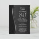 Invite your friends and loved ones with this modern black and silver surprise 80th birthday party invitation. The customisable text area in this invitation template allows you to effortlessly include all the necessary details for your special birthday celebration, including the date, time, venue, and RSVP information. A variety of paper types and corner styles are available for your unique invitations, along with the option to download if you prefer a digital format.