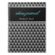 black, greys and silver triangle pattern Notebook. With stylish black area for custom title and personalised name (or other text you want) : Trimmed with a metallic look borders : Versatile design - would be suited for many practical uses eg: Goal Setting Journal, Travel journal, etc. Personalise with name / book title and any other details (delete which ever you don't need)