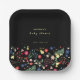 Black Simple Elegant Wildflower Baby Shower Paper Plate