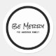 Trendy and modern Simple Script Be Merry Holiday Stickers with a black text design with the words "Be Merry" in a bold handwritten script. These elegant typography design stickers can be easily customised with your family name or other text. Find more customisation options by clicking Customise It.