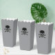 Black Skull popcorn boxes should be filled with popcorn and other snacks for Halloween, haunted houses, horror film fans, murder mystery fans, book reading clubs, horror conventions, pirate reenactors, roleplay gamers, Goths, bikers, or just people who like skulls. Black Skull is Steamy Raimon original art.