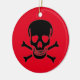 Black Skull red round ceramic ornament 2 sided