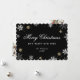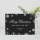 Elegant black holiday card featuring a charming frame of falling snow, snowflakes and stars against a black background. An elegant script font is used to add more festive look to this greeting card. Easily personalize this non photo holiday card online.