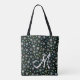 Black Snowflakes in Various Shapes Modern Monogram Tote Bag