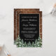 Wedding invitation card. Rustic brown wood, snowing background and snowy forest. Cosy vintage country style. More items are available in this style in our store. You can edit the design further, change colours, fonts and add extra text by clicking "customise further" link.