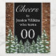 "Cheers" Birthday bottle label. Rustic brown wood, snowing background and snowy forest. Cosy vintage country style. More items are available in this style in our store. You can edit the design further, change colours, fonts and add extra text by clicking "customise further" link.