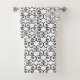 Black spiral design pattern on white bath towel set
