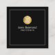 Create your own simple and basic professional business card in black, with your logo and name in white serif font... and with fields for phone number and email on the back.