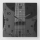 Clock with a black square clock face on a black and white bass guitar background. Customisable. Modern and trendy, yet classic, this clock is perfect for any decor.