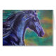 A black horse with the wind in his mane, running through this colourful pastel painting.