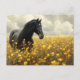 The Black Stallion with Yellow Wildflowers Postcard showcases a breathtaking scene of a powerful black stallion surrounded by delicate yellow wildflowers. The contrast between the dark, sleek horse and the vibrant blossoms creates a striking and memorable image. Ideal for sending a heartfelt message, this postcard is perfect for horse lovers and those who appreciate nature's beauty.