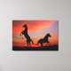 Featuring a breath taking view of two Black Stallone silhouette.With the orange sun set above them one horse is up on his hind legs.this is a beautiful oil painting Print on this Wrapped Canvas is the field with a great view.