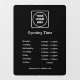 Keep customers informed with this black custom business window cling. Perfect for shops, restaurants, cafés, salons, and offices, this professional design displays your opening hours and business logo clearly. Easy to apply and remove, this durable window sign is a simple yet effective way to make your storefront stand out while keeping your hours visible.