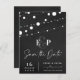 Black White String Lights Monogram Wedding Save The Date Invitation . Send out these elegant Chalkboard String Lights Wedding Save The Date magnetic Invitation to family and friends. A perfect way to announce the wedding. Can be fully customised by changing the names of the Bride and Groom , wedding Date . The design has a faux chalkboard background with string lights . For any further customisation, feel free to contact me at mypaperlove2021@gmail.com