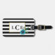 Black Stripe & Blue Floral Monogram Luggage Tag