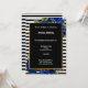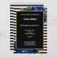 BLACK STRIPE BLUE GOLD FLORAL 2 BIRTHDAY PARTY INVITATION