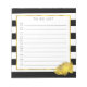 Notepad features bold black and white stripes with a gleaming peony flower in faux (printed) gold effect, and "to do list" at the top. 10 lines with checkboxes help you keep track of all your important tasks!