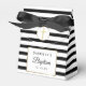 With a classic black and white stripe background, this elegant baptism or christening favour box features an elegant faux gold foil border framing your event details set in chic typography and a special thank you message on the reverse. Designed by Thisisnotme©